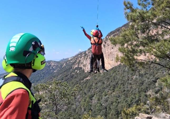 Una vez llegaron hasta el cazador, que iba acompañado, los sanitarios le dieron una primera asistencia in situ, vendándole la pierna para detener la hemorragia, estabilizándolo hasta que pudieran intervenirlo. Se decidió evacuarlo del lugar haciendo izaje con el helicóptero, ya que se encontraba en una zona de difícil acceso. Para agilizar el rescate, lo evacuaron por aire hasta el aeropuerto de la Seu d’Urgell, donde lo esperaba la ambulancia que lo trasladó, finalmente, al hospital.